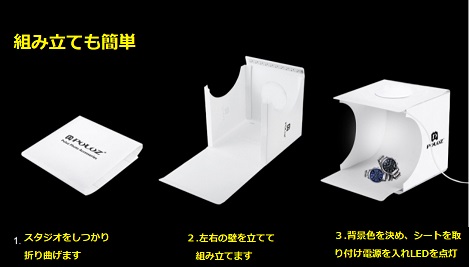 注:フォトスタジオの組み立て方法は、簡単です。また購入者限定の、ビデオで組み立て方を提供しております。